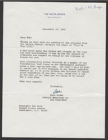 Letter from White House to Senator Bob Dole Letter from Special Assistant to the President (Nixon), thanking Dole for sending a news clipping regarding 'This is your life Bob Dole' event and for recommending Dr. Kelikian for the 'Presidential Task Force on the Handicapped.' -