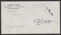 Note and Newspaper Clipping "'Bob Dole Day' Stirs Senator" Newspaper clipping from the Wichita Eagle and Beacon, sent to Bob Dole with note by Richard Robbins, with Dole's Reply Letter