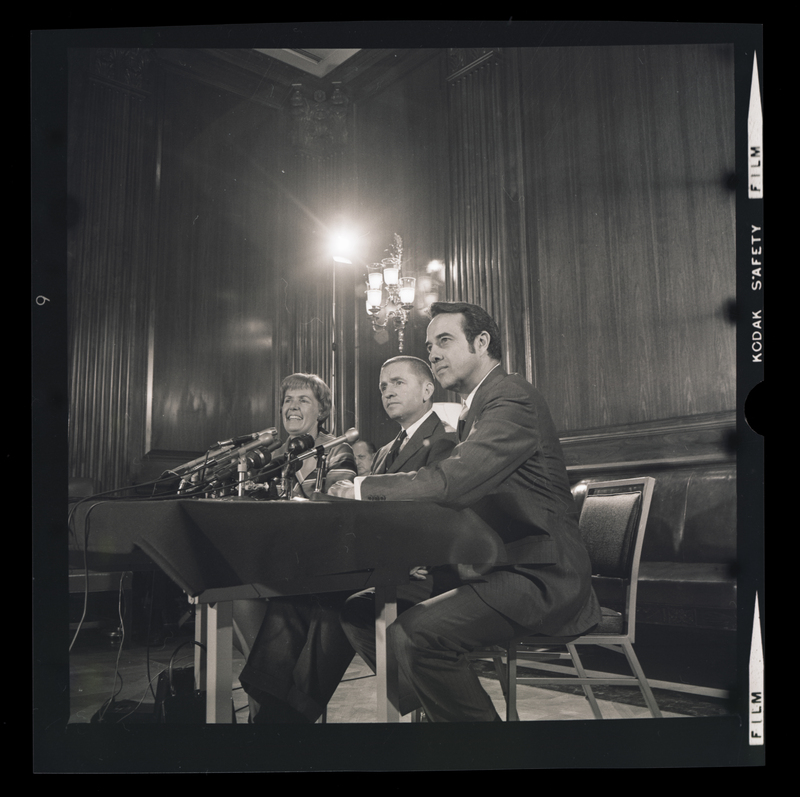 Senator Bob Dole, Sybil Stockdale, and Ross Perot at the Press Conference for the International Appeal to Justice/May Day Events