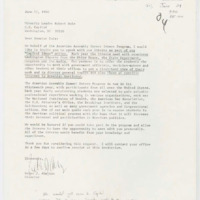 - Letter from Peter J. Abajian to Senator Bob Dole, Inviting Dole to Speak at the Armenian Assembly Summer Intern Program's Capitol Ideas Series