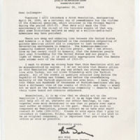 - Dear Colleague Letter on Introducing Joint Resolution to Recognize the Armenian Genocide